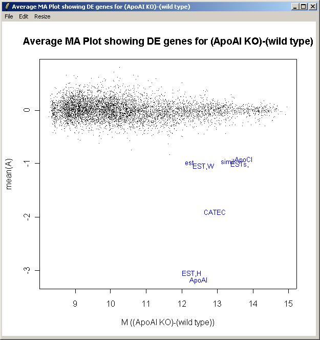 Background. The data is from a study of lipid metabolism by Callow et al (2000). The apolipoprotein AI (ApoAI) gene is known to play a pivotal role in high density lipoprotein (HDL) metabolism. Mouse which have the ApoAI gene knocked out have very low HDL cholesterol levels. The purpose of this experiment is to determine how ApoAI deficiency affects the action of other genes in the liver, with the idea that this will help determine the molecular pathways through which ApoAI operates.