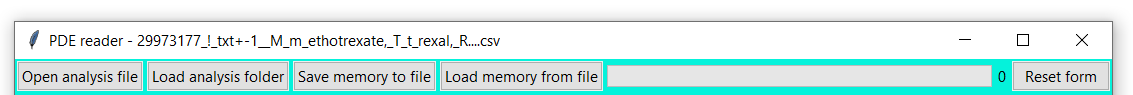 6. Close session: The PDE_analyzer_i() can be closed with this button. While analysis is running the processing can be aborted by pressing this button which will carry the caption “Stop analysis”.