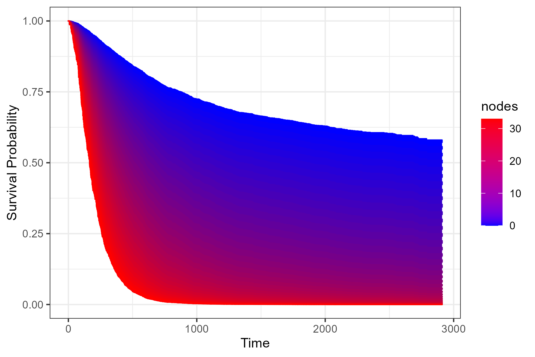 ) on the survival time. A survival area plot can be