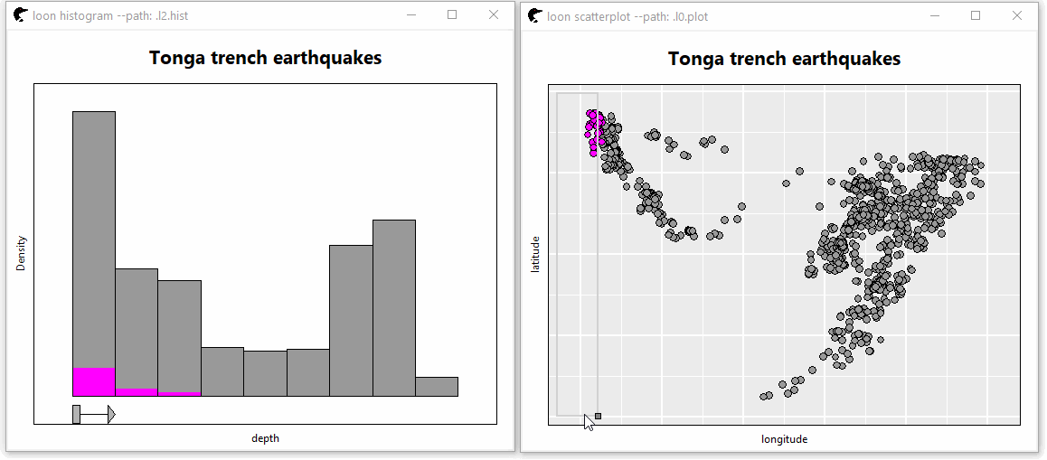 l_plot3D(long, lat, depth, linkingGroup = "quakes")
