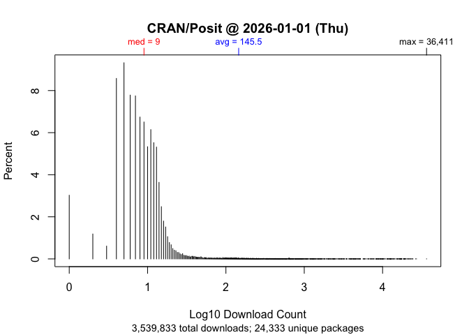 CRAN or zero downloads for mis-spelled/non-existent packages. You’ll
