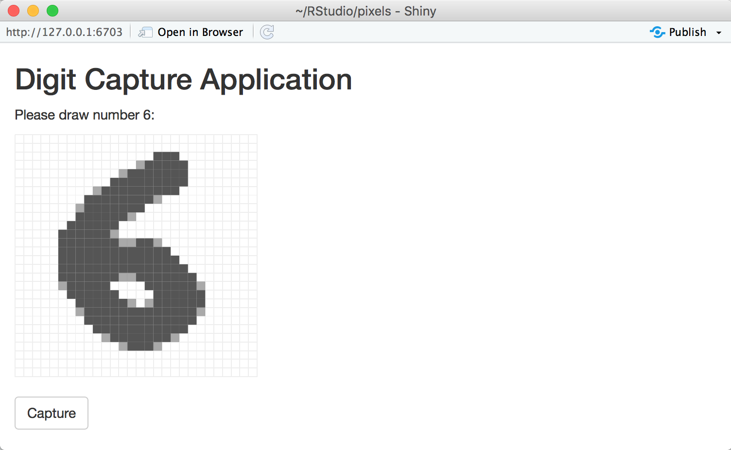 Finally, one can use ‘shiny_render_pixels()’ with a ‘Shiny’ application to help collect image datasets. For instance, to collect images similar to the MNIST dataset as follows: