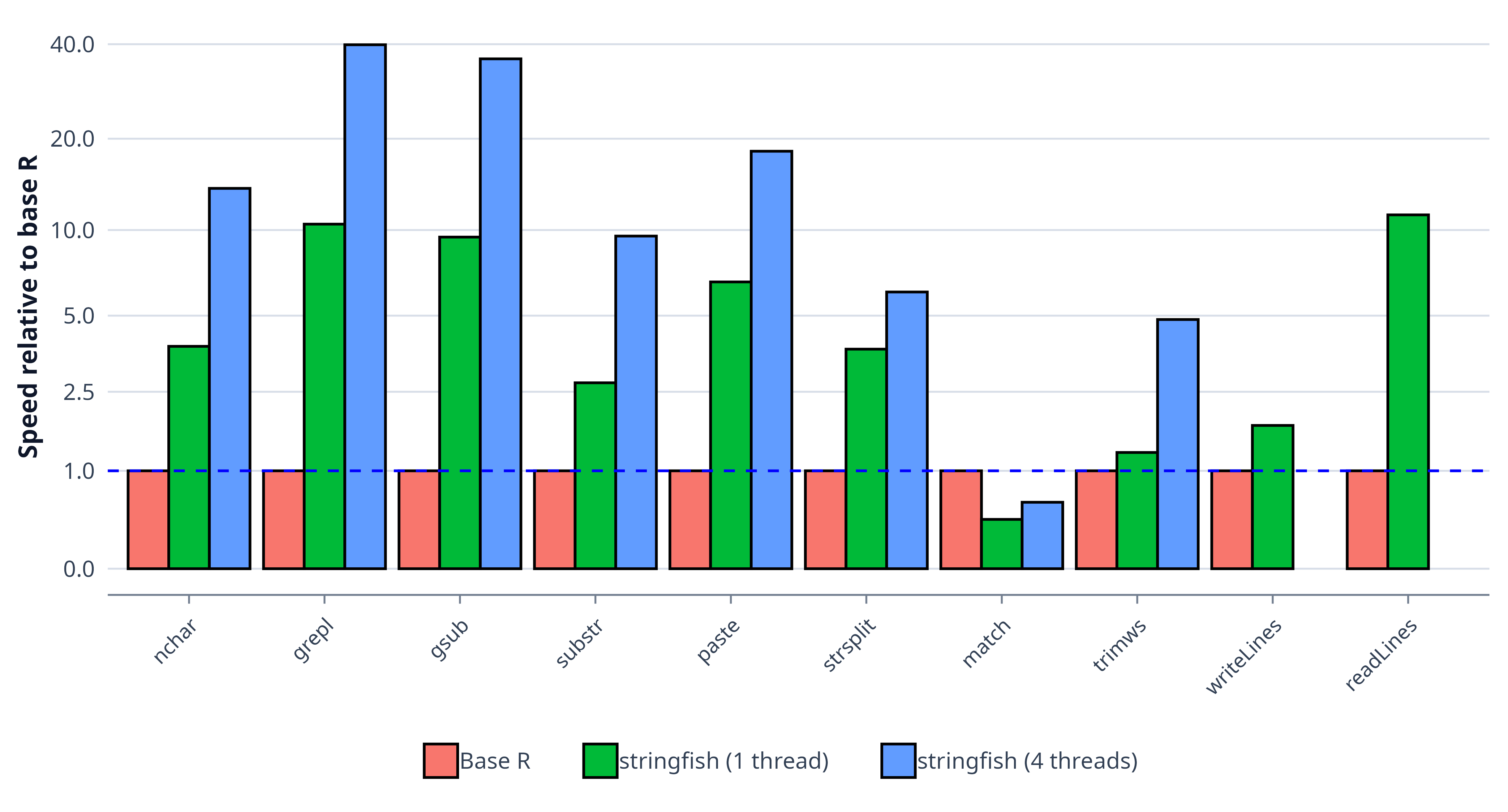 through a quick benchmark comparing stringfish and base