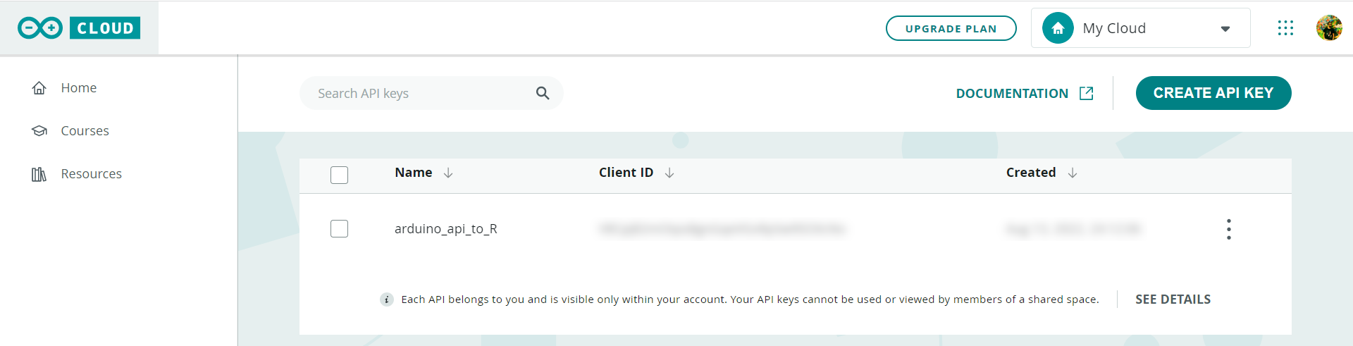 the page https://cloud.arduino.cc/home/api-keys/ and