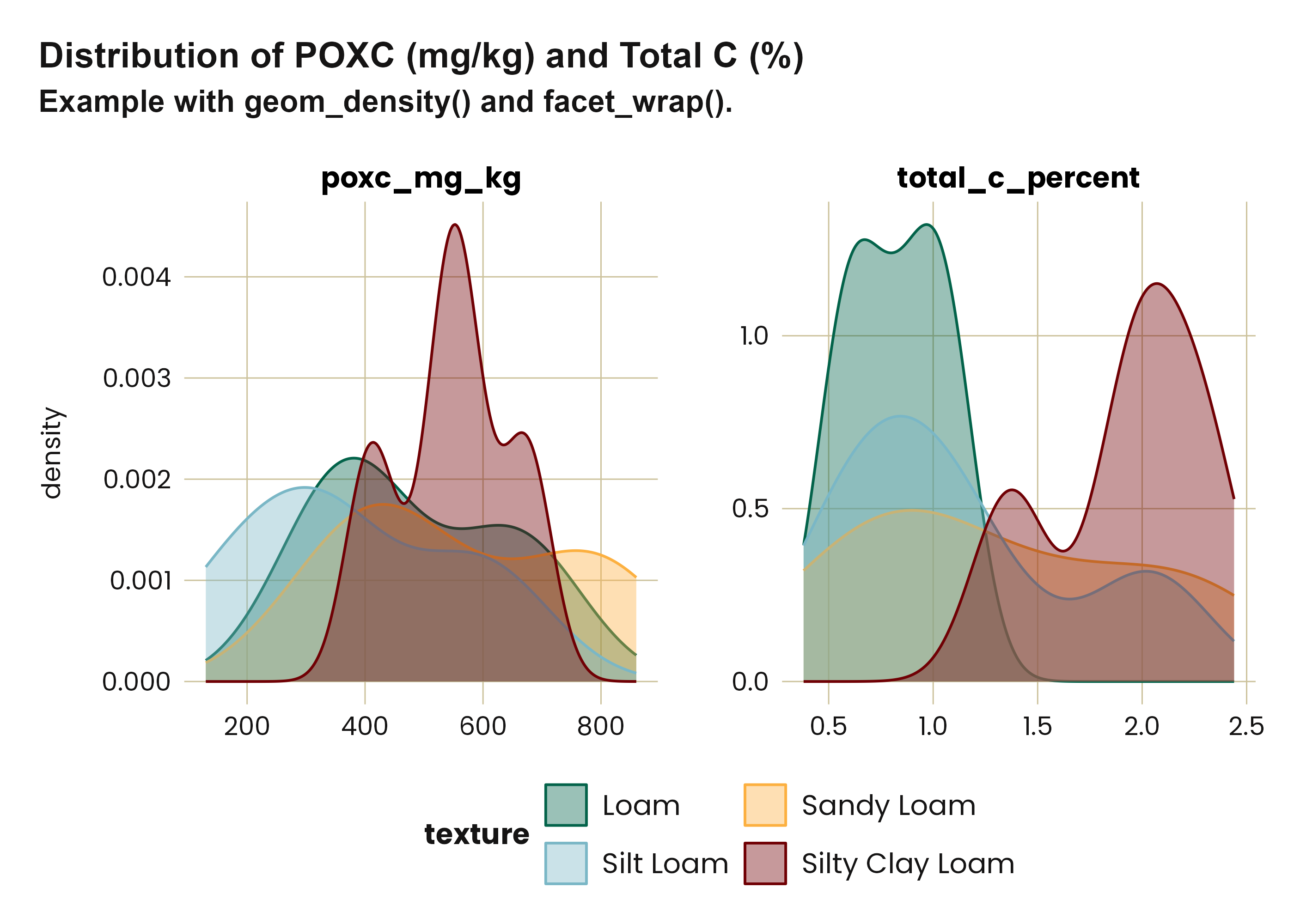title = "Distribution of POXC (mg/kg) and Total C (%)",