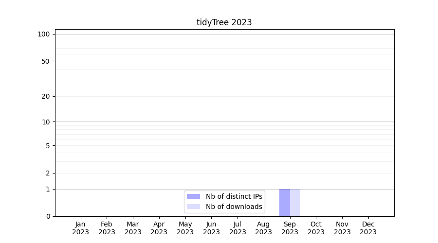 Number of downloads for experiment package tidyTree, year by year, from 2025 back to 2014 (years with no downloads are omitted):