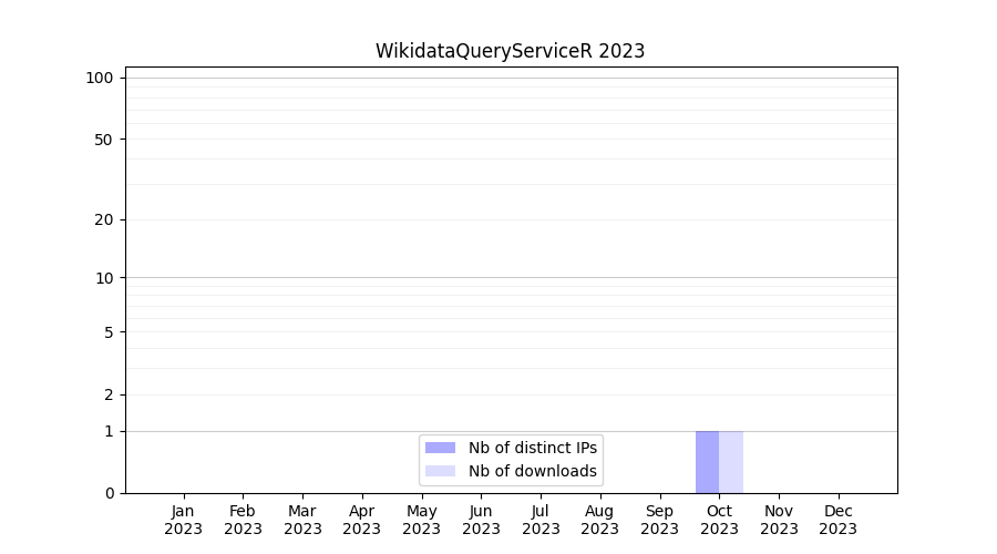 Number of downloads for software package WikidataQueryServiceR, year by year, from 2025 back to 2014 (years with no downloads are omitted):
