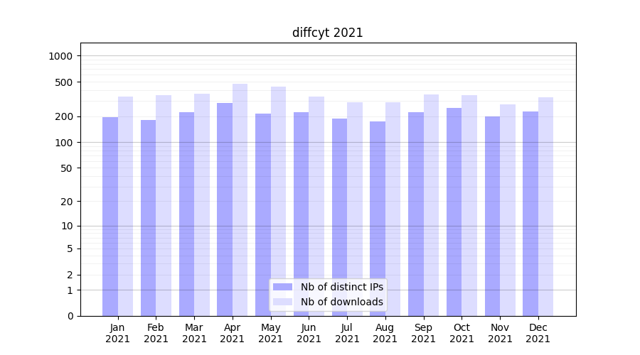 Number of downloads for software package diffcyt, year by year, from 2025 back to 2014 (years with no downloads are omitted):