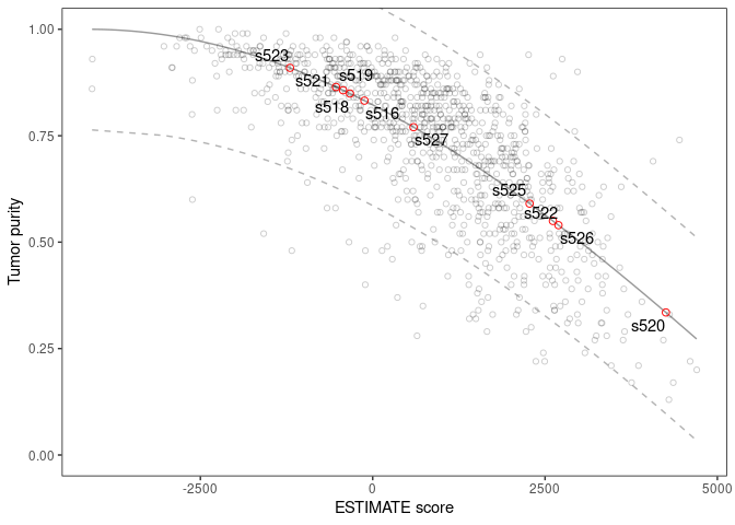 They can also be plotted in context of the Affymetrix profiled tumors used to generate the ESTIMATE model: