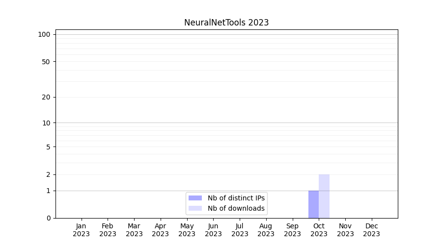 Number of downloads for annotation package NeuralNetTools, year by year, from 2025 back to 2014 (years with no downloads are omitted):