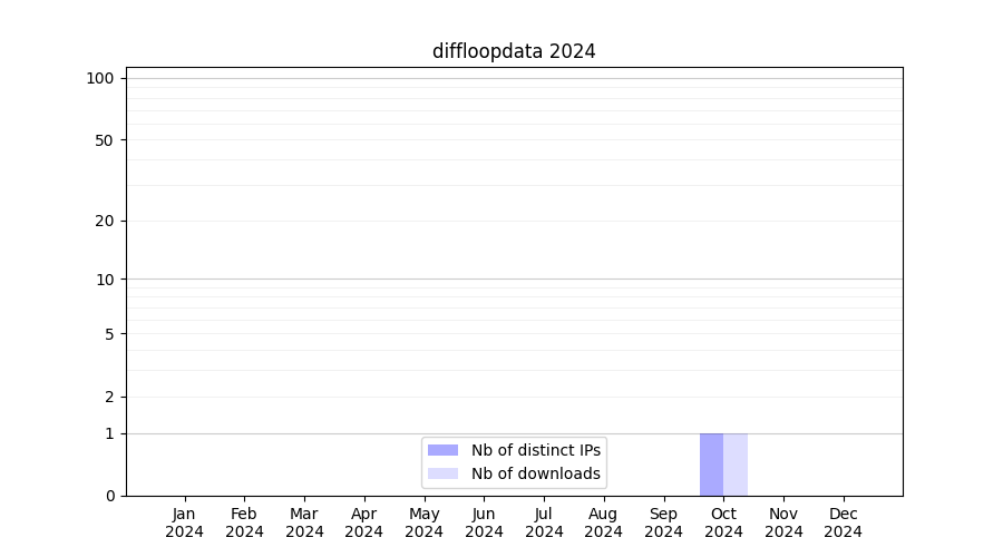 Number of downloads for annotation package diffloopdata, year by year, from 2025 back to 2014 (years with no downloads are omitted):