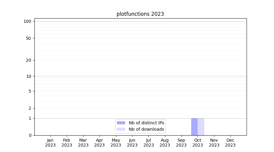 Number of downloads for annotation package plotfunctions, year by year, from 2025 back to 2014 (years with no downloads are omitted):