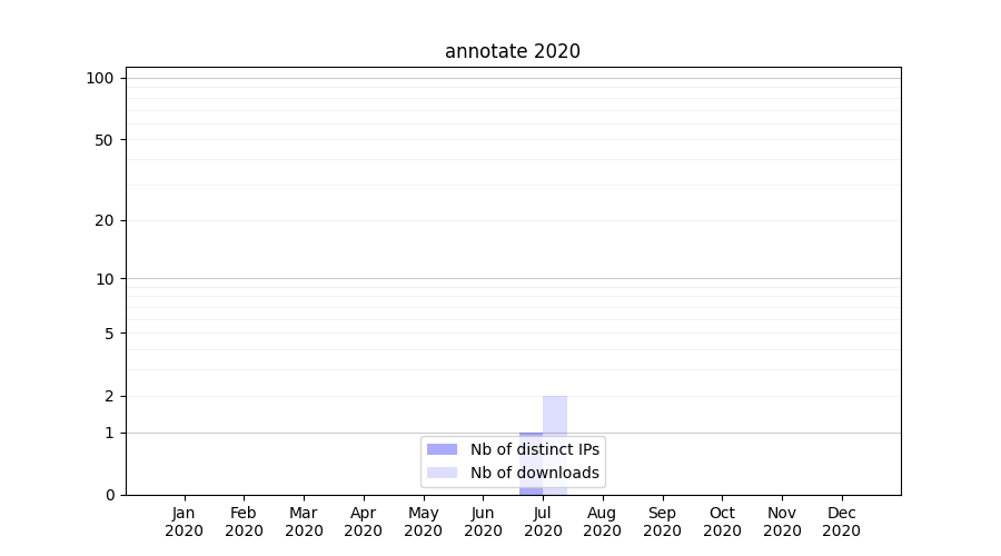 Number of downloads for experiment package annotate, year by year, from 2025 back to 2014 (years with no downloads are omitted):