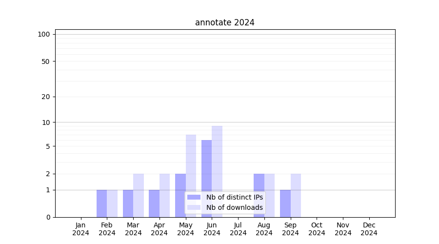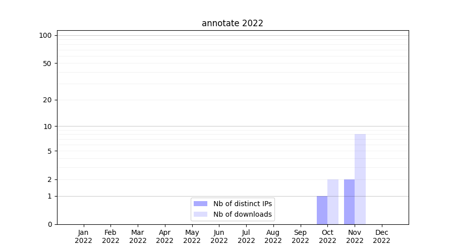 Number of downloads for workflow package annotate, year by year, from 2025 back to 2015 (years with no downloads are omitted):