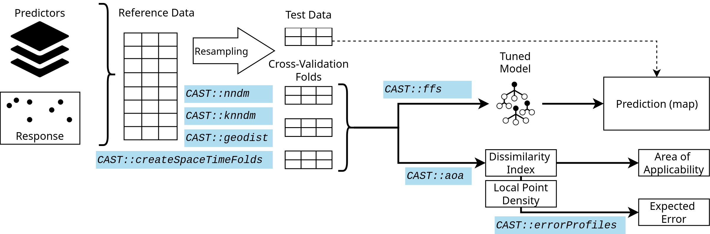 Note: The developer version of CAST can be found on https://github.com/HannaMeyer/CAST. The CRAN Version can be found on https://CRAN.R-project.org/package=CAST