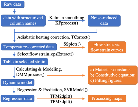 TPMplt package is a tool-kit for building dynamic material model (DMM), as well as for raw data smoothing, adiabatic heating correction, the calculation for constitutive equation.