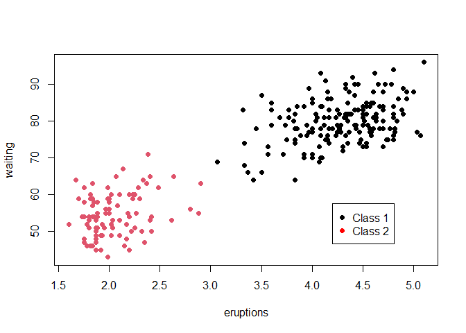 <- clustTMB(response = faithful, covariance.structure = "VVV") m1