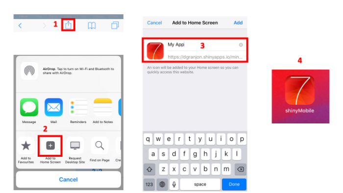 Copy the URL of your app in your mobile web browser (iOS: Safari