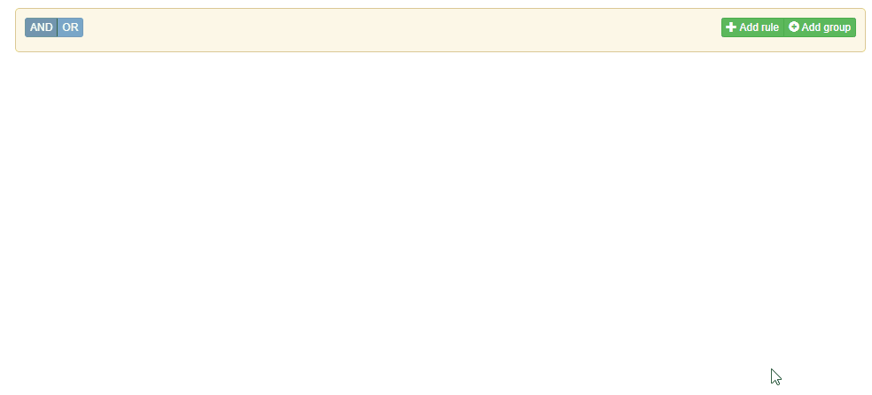 As shown above, the returned widgets value is interpreted by queryBuilder package. The package itself allows to construct filtering query with the usage of rules and groups - definitions for single field filtering operation and the way for combining them into a single filtering query.