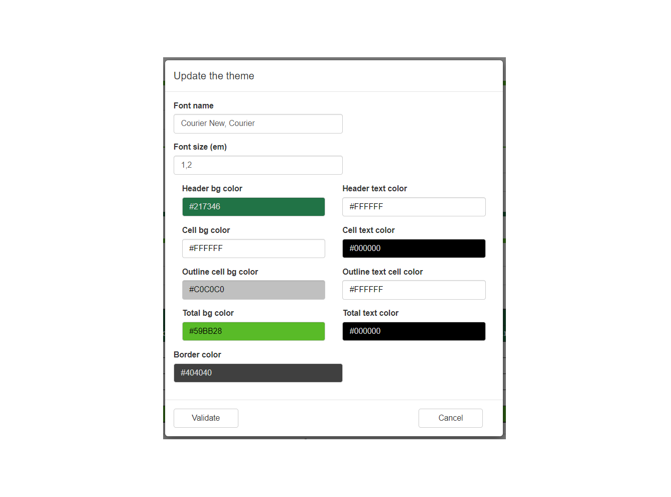 All calculations for the pivot tables take place inside R, enabling the use of a wide-range of R functions in the calculation logic, and are optimized with the use of packages dplyr & data.table