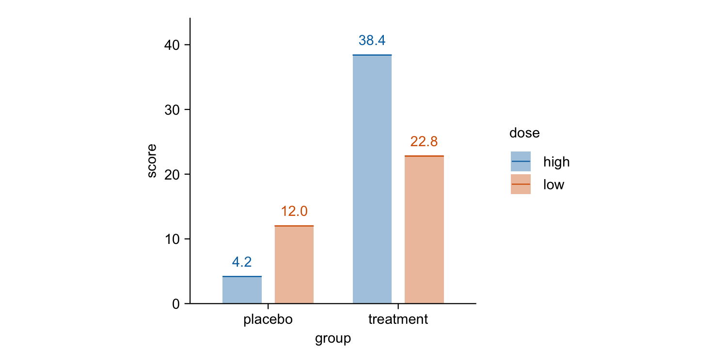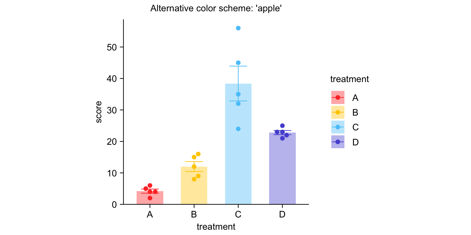 study tidyplot(x = treatment, y = score, color = treatment) |>