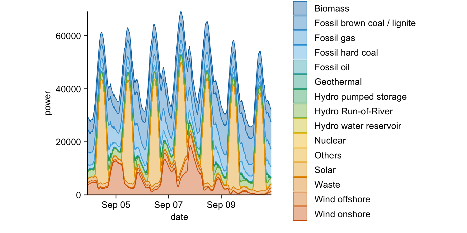 dplyrtidyplot(y = energy, color = energy_source) |>