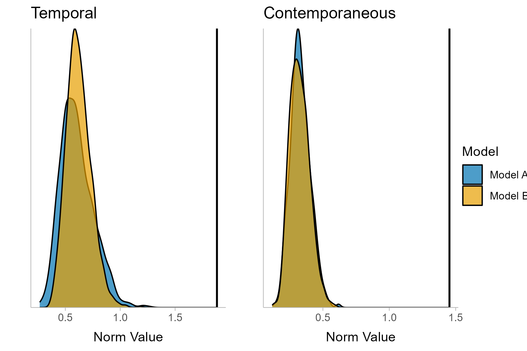 You can then compare these networks, summarize the results and plot the test results. In this case, the test is significant for both the temporal and the contemporaneous network.